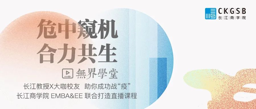 【长江商学院无界学堂】为在线直播课程,由长江商学院EMBA和EE项目联合推出,旨在帮助更多企业家解决疫情带来的危机,找到增长机遇。