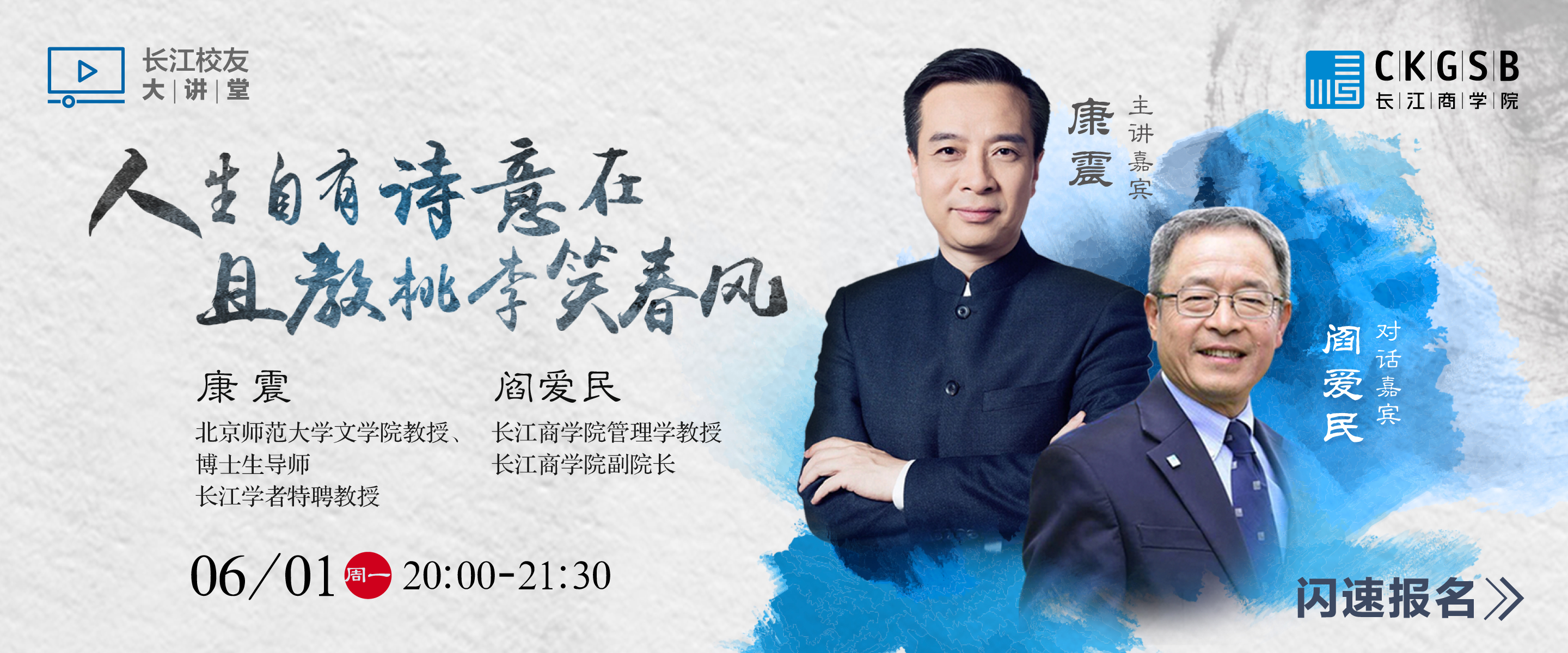 人生自有诗意在,且教桃李笑春风。时值六一,长江校友大讲堂特别邀请到北京师范大学文学院教授、博士生导师,长江学者特聘教授康震,携手长江商学院副院长、“诗人教授”阎爱民,开启一场对中华古典文化的巡礼,一同重温帝王将相、文人墨客笔下的家训经典,领略中华优秀传统文化的魅力与智慧。