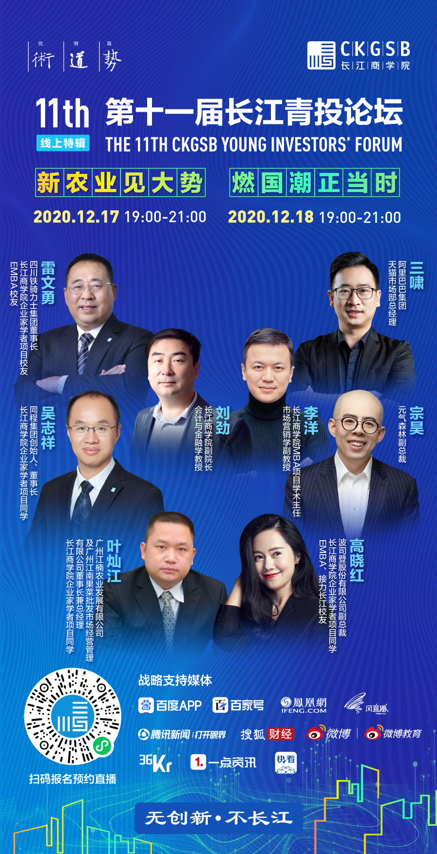 长江青投论坛是长江商学院最重要的学院级品牌活动之一,迄今已在北京、上海、深圳等地举办十届,论坛汇聚全球知名学者、商界领袖、新一代“双创”领军者和知名投资人。今年长江青投论坛首次在云端举办,将围绕新农业新机遇、国潮新消费等主题展开精彩讨论,产学研协同互动,上中下游无缝衔接,分享全球创新价值洞见,全面助力中国经济的转型升级。