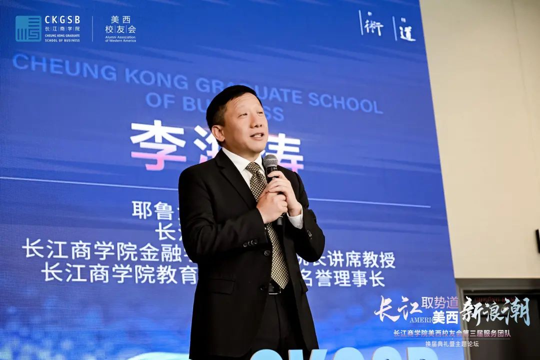 长江商学院院长、金融学教授、杰出院长讲席教授、长江商学院教育发展基金会名誉理事长李海涛则围绕《百年变局中长江人的担当》展开演讲,强调在世界格局深度重塑的历史关口,长江企业家肩负着传承中国智慧、链接全球资源的重要使命。李海涛院长指出,长江人应以前瞻视野拥抱时代挑战,在变化中挖掘机遇,以担当与远见书写新时代的企业责任与文化自觉。
