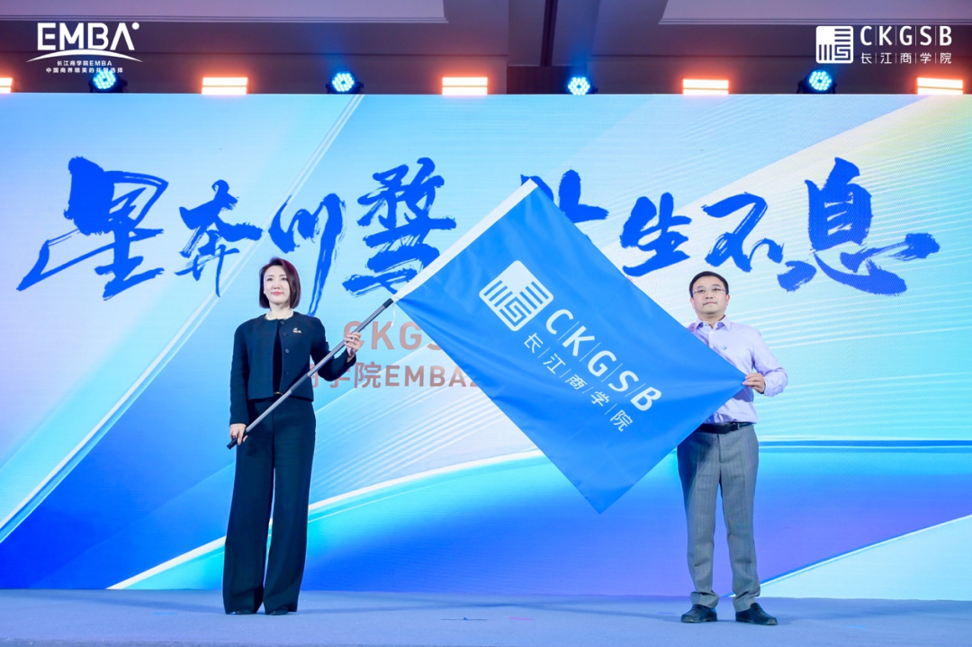 在校旗传承仪式中,李静将长江之旗郑重传递给新生代表陈姣姣。长江精神,薪火相传。希望EMBA2025级春季班新同学在长江学有所成,长江精神,生生不息。