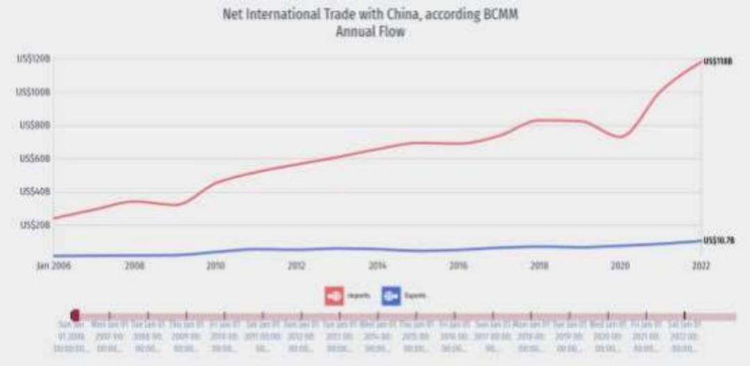《年度墨西哥與中國(guó)貿(mào)易, 2006-2022》