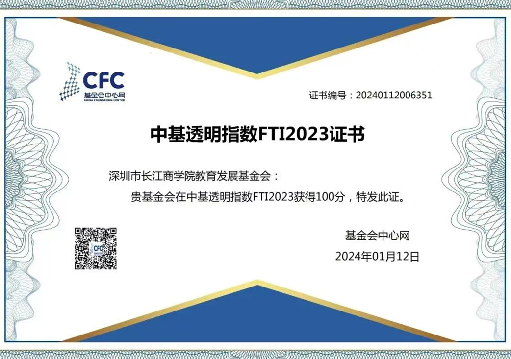 長(zhǎng)江商學(xué)院教育發(fā)展基金會(huì)(CKEDF),是一家于2016年2月在深圳市民政局正式登記注冊(cè)的非公募基金會(huì)組織,已取得 “非營(yíng)利組織免稅資格認(rèn)定”和“捐贈(zèng)稅前扣除資格”兩項(xiàng)財(cái)稅認(rèn)證,并獲評(píng)深圳市社會(huì)組織4A等級(jí),2021-2023連續(xù)三年榮獲“中基透明指數(shù)FTI”滿分100分。