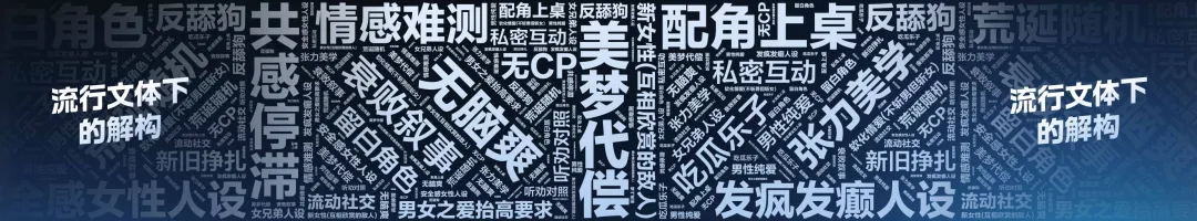 在流行文體的解構(gòu)方面,我們的創(chuàng)作者天天研究這些詞,這些詞都是大眾在互聯(lián)網(wǎng)空間給創(chuàng)作者提出的要求,它彌漫在網(wǎng)文、動(dòng)畫(huà)、綜藝、電影、電視劇所有的評(píng)論空間當(dāng)中。