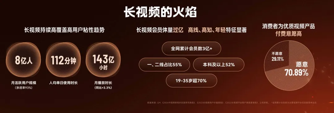 大多數(shù)行業(yè)在未來(lái)兩三年,都可能是從增量性發(fā)展轉(zhuǎn)化為內(nèi)涵性發(fā)展。如果我們真正能夠把長(zhǎng)視頻的故事加以升格、加以審美、加以升維,去滿足高線、高知、年輕用戶的需求,滿足平臺(tái)過(guò)億會(huì)員的需求,滿足高付費(fèi)意愿人群的需求,我相信這個(gè)行業(yè)依然會(huì)在內(nèi)涵式收益上有一個(gè)高增長(zhǎng)的獲得。用戶會(huì)拿錢(qián)、拿自己的意愿、拿自己為精神夢(mèng)想的溢價(jià)去支持長(zhǎng)視頻行業(yè)。