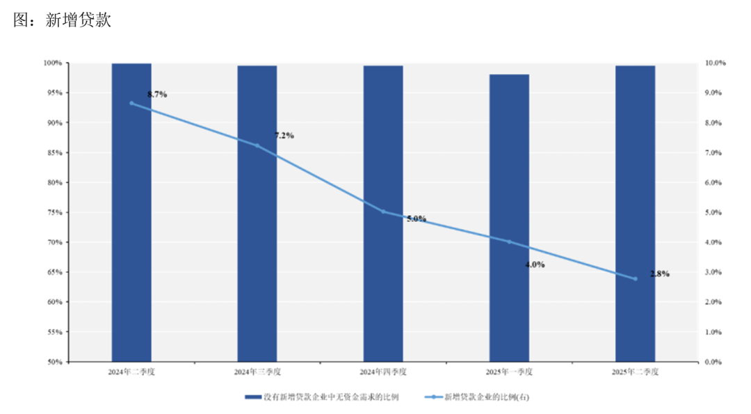 ● 但新增贷款企业比例仅为 2.8%(Q1为4%),为近年低点,且未申请贷款的企业多数表示“无资金需求”。