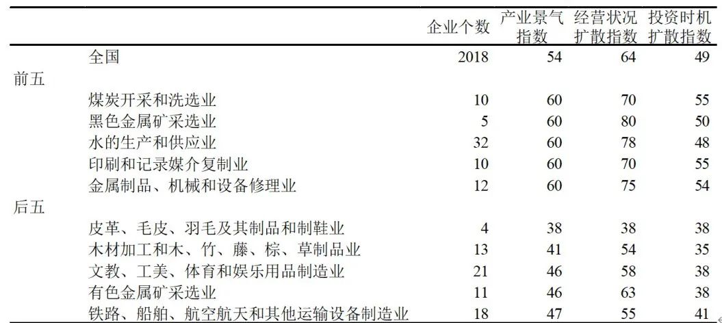 ● 行业排名前五为:煤炭开采和洗选业、黑色金属矿采选业、水的生产和供应业、印刷和记录媒介复制业、金属制品、机械和设备修理业;