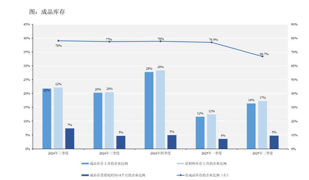 ● 约 66.7% 的企业有成品库存,较上季度明显下降,显示前期去库存成效仍在延续;