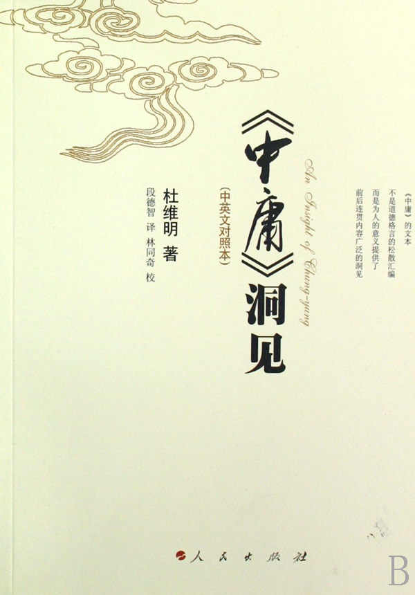 《中庸·洞见》(中英文对照)便是当代著名新儒家代表杜维明先生的一部诠释国学元典《中庸》深层义理的著作,其紧紧围绕文本的三个核心概念,即“君子”、“政”和“诚”,对蕴含在《中庸》中的种种洞见作了高屋建瓴、鞭辟入里的解析和阐释,既可以看做是作者对《中庸》的“洞见”,也可以理解为作者对《中庸》“洞见”的“洞见”;其思...